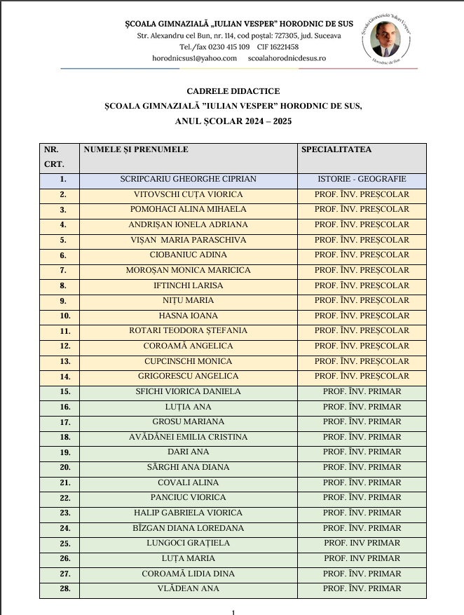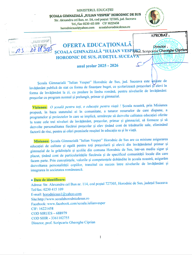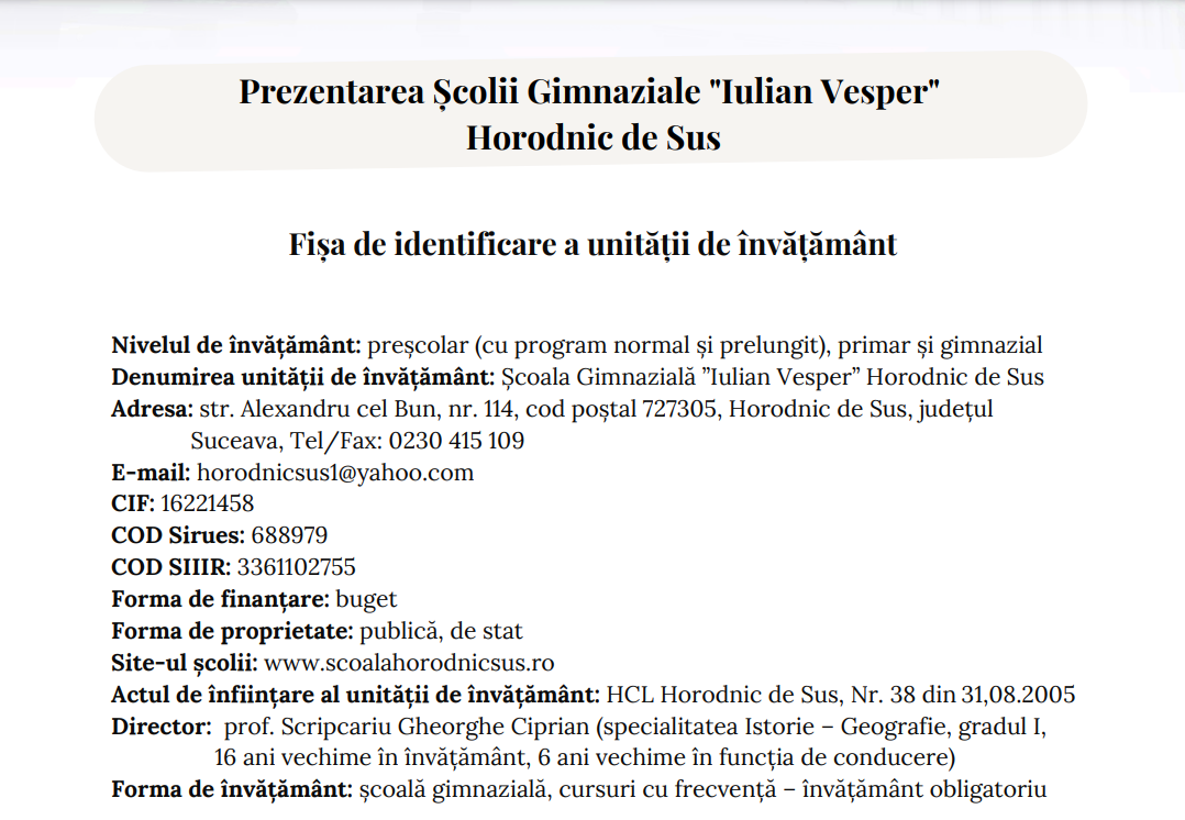 Școala Gimnazială "Iulian Vesper" Horodnic de Sus