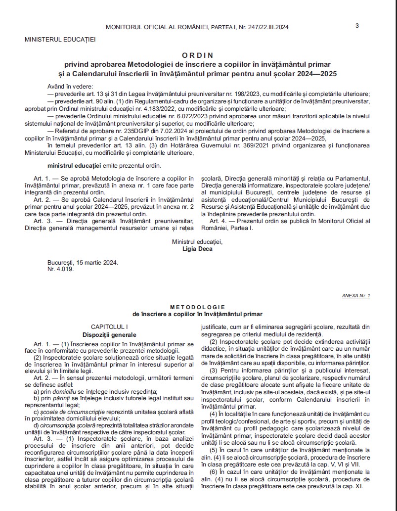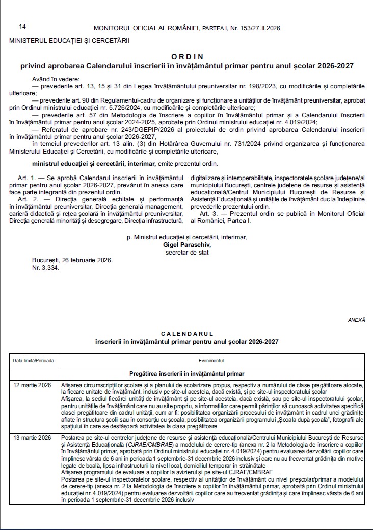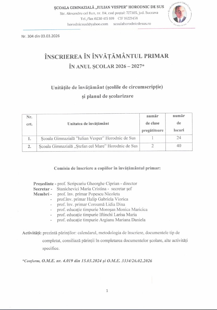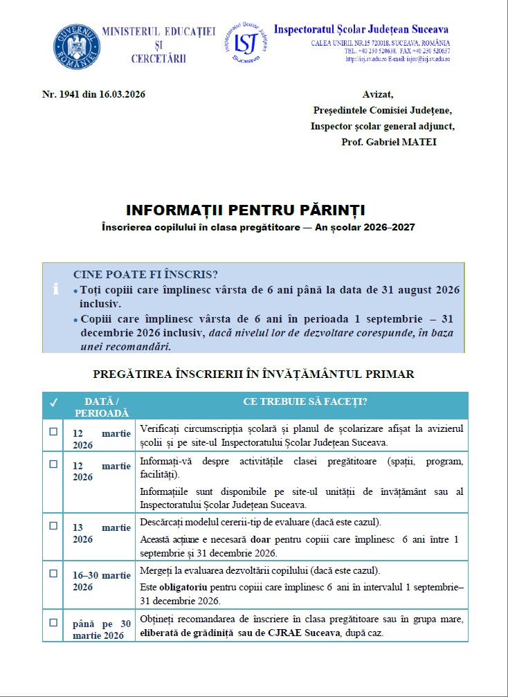 ÎNSCRIERE ÎNVĂȚĂMÂNT PRIMAR 2026 -2027